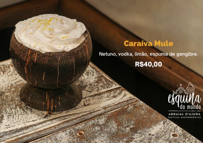 Netuno, vodka, xarope de gengibre, suco de meio limão siciliano e espuma de gengibre